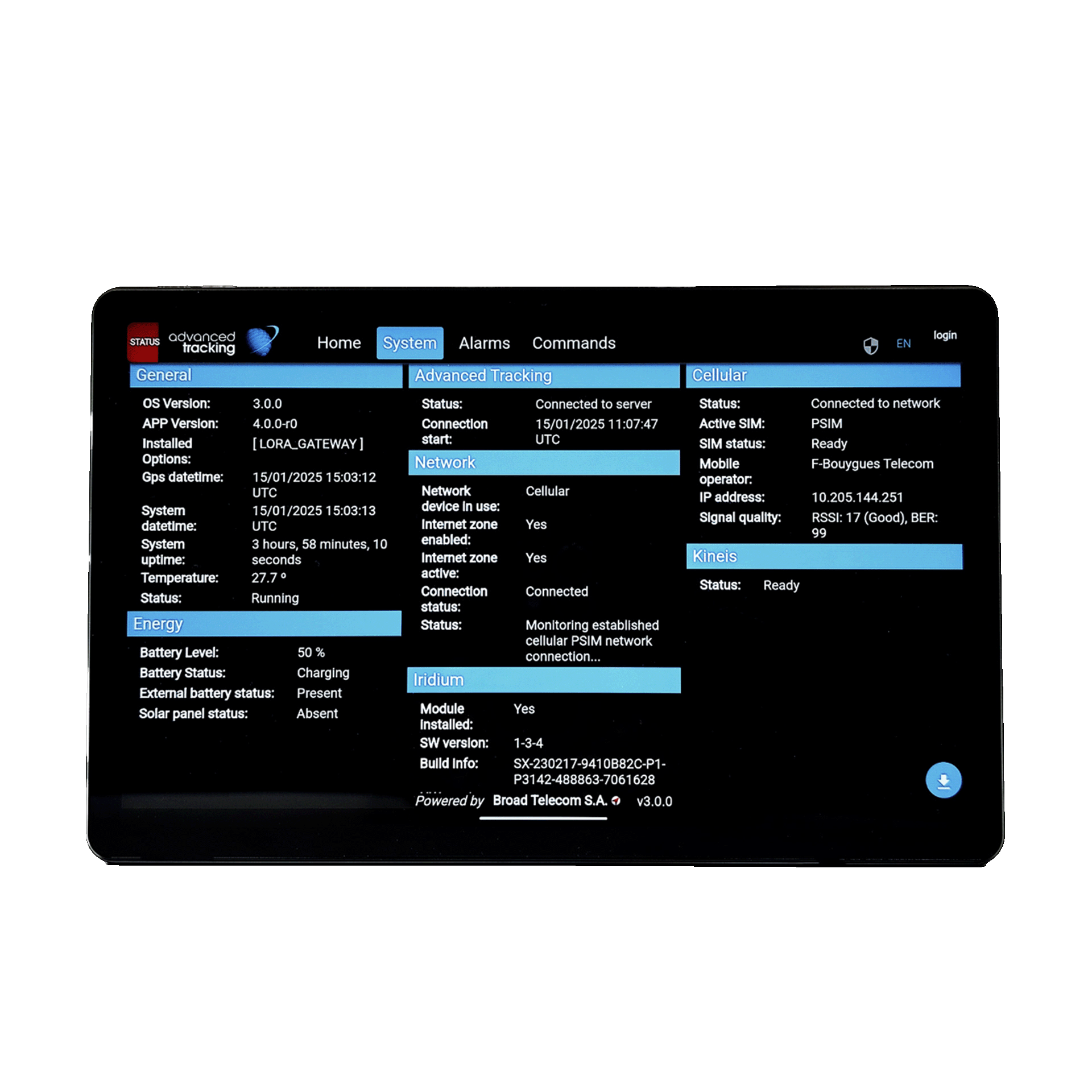 - Power : 12V/24V, solar panel compatible, with internal battery backup.